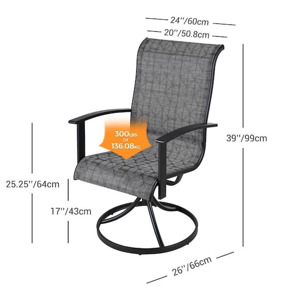 Patio Dining Metal Outdoor Rocking Chair for Lawn Garden Backyard Deck, Black & Grey Plaid (2-Pack)