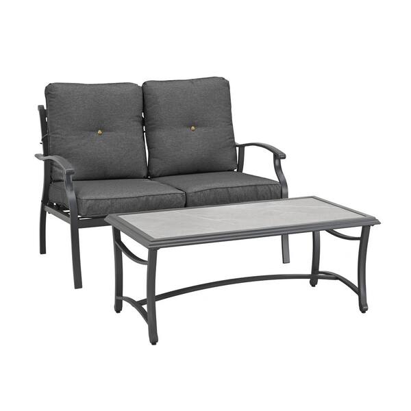 2-Piece Metal Patio Loveseat and Coffee Table Deep Seating Set with Dark Gray Cushions
