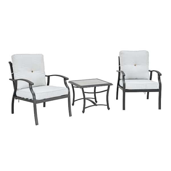 3-Piece Metal Patio Conversation Deep Seating Set with Off-white Cushions