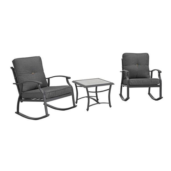 3-Piece Metal Patio Conversation Rocker Seating Set with Dark Gray Cushions