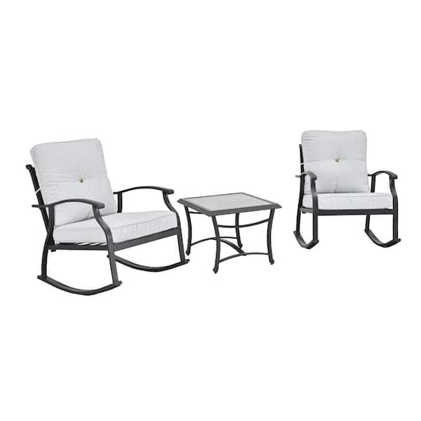 3-Piece Metal Patio Conversation Rocker Seating Set with Off-white Cushions