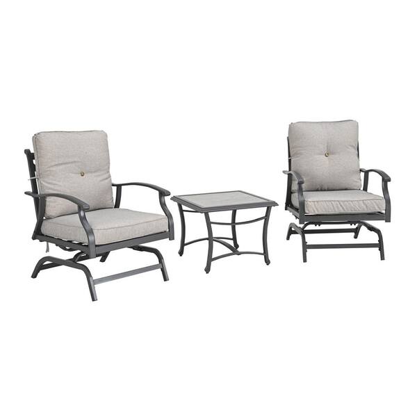 3-Piece Metal Patio Conversation Rocking-Motion Seating Set with Light Gray Cushions