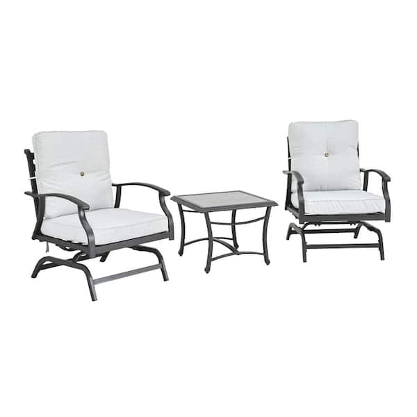 3-Piece Metal Patio Conversation Rocking-Motion Seating Set with Off-white Cushions