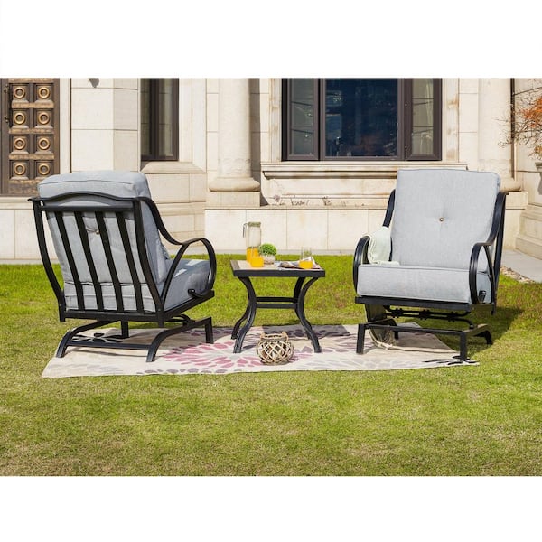 3-Piece Metal Patio Conversation Set with Gray Cushions