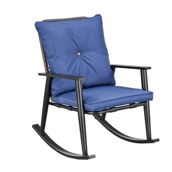 3-Piece Metal Wicker Patio Rocker Conversation Set with Blue Cushions