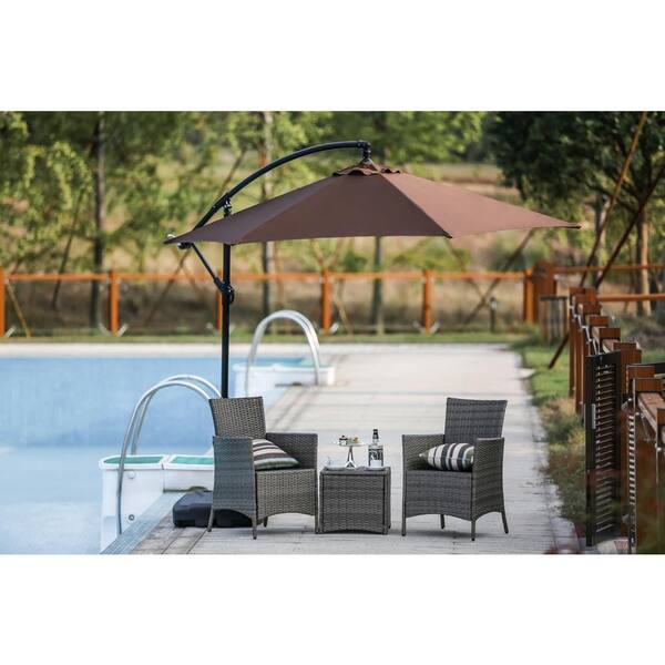 9 ft. Steel Cantilever Patio Umbrella in Brown