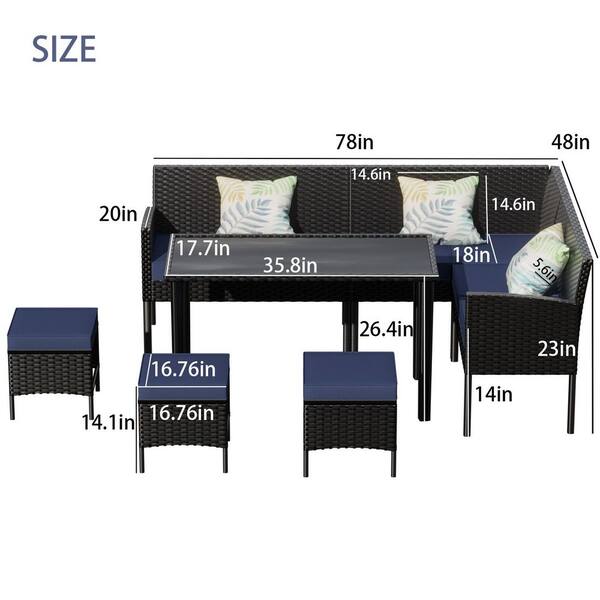 Patio Furniture 7-Piece Outdoor Furniture Set, Backyard Furniture Set, Waterproof Seat Cushion, Glass Table, Blue