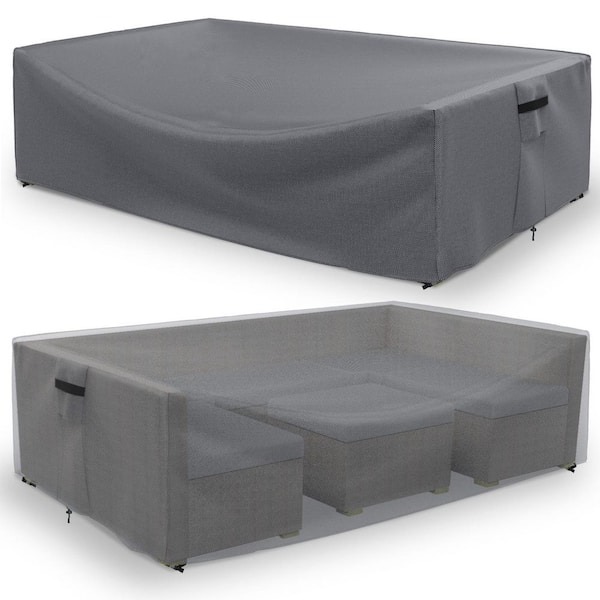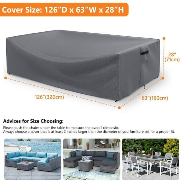 Patio Furniture Cover, Waterproof, Furniture Table, Chair and Sectional Sofa Set, 126 in. L x 64 in. W x 28 in. H, Gray