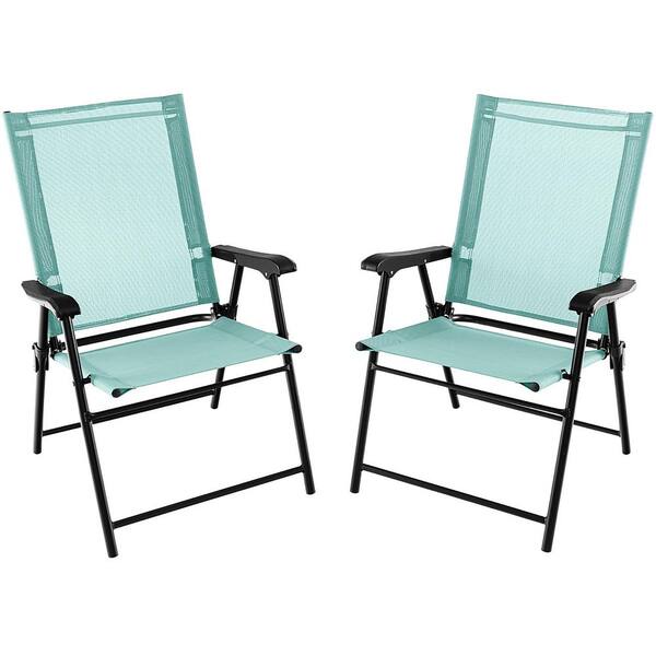 Patio Mint Green Folding Chairs Outdoor Portable Pack Lawn Chairs w/ Armrests (Set of 2)