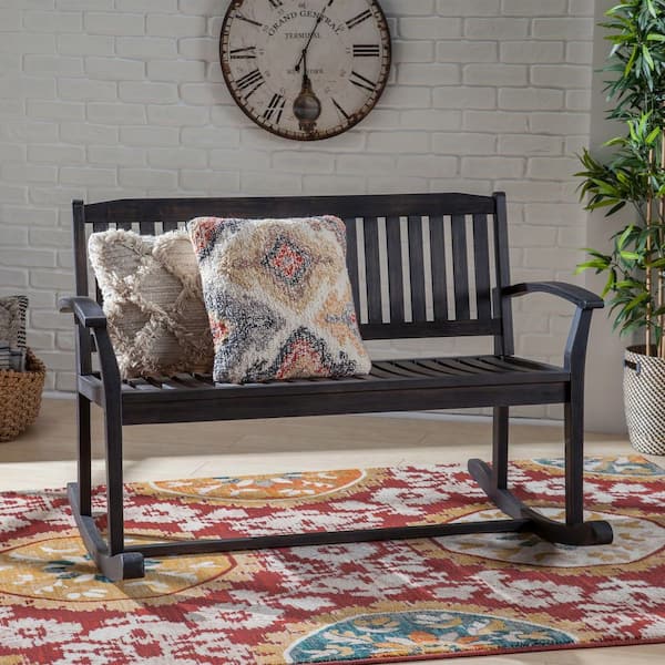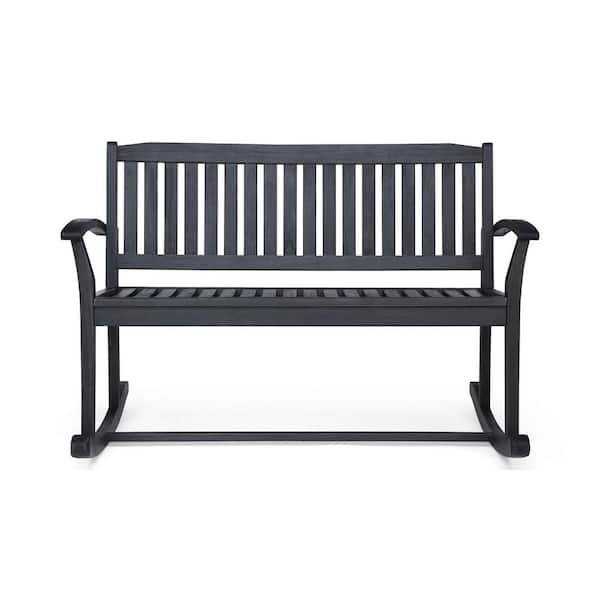 Patio Rocking Loveseat, 2 Person Outdoor Rocker Bench, Acacia Wood Outdoor Rocking Chair with Armrests, Backyard, Garden