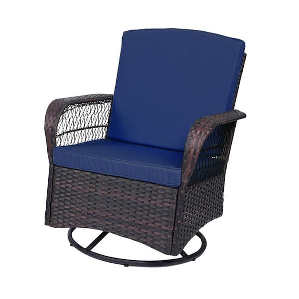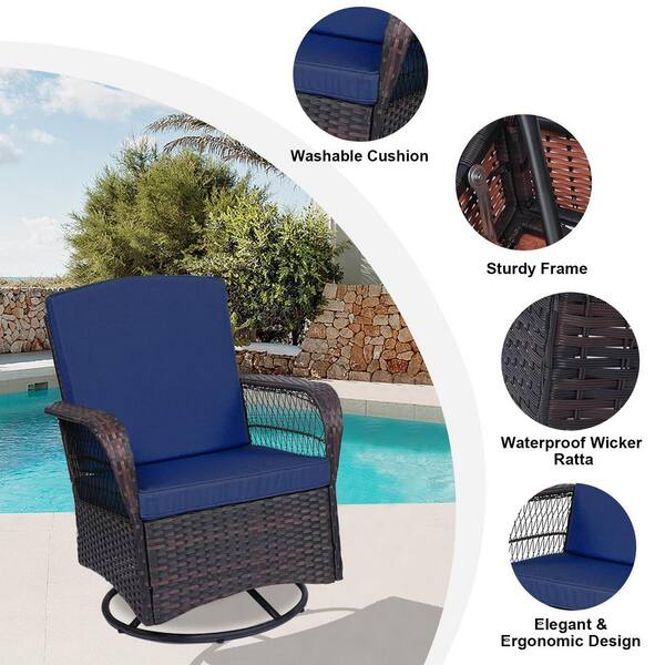 Patio Rocking Swivel Wicker Chairs Outdoor Conversation Bistro Set PE Rattan Furniture for Porch Deck Garden Dark Blue