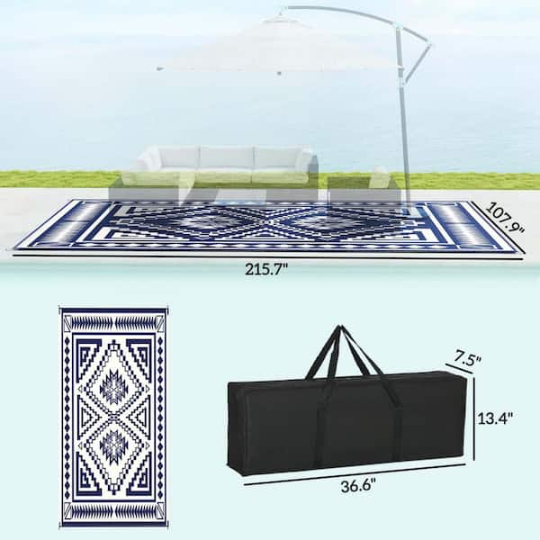 Patio Rug, Reversible Outdoor Rug, Waterproof Plastic Straw with Carry Bag