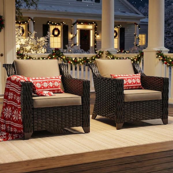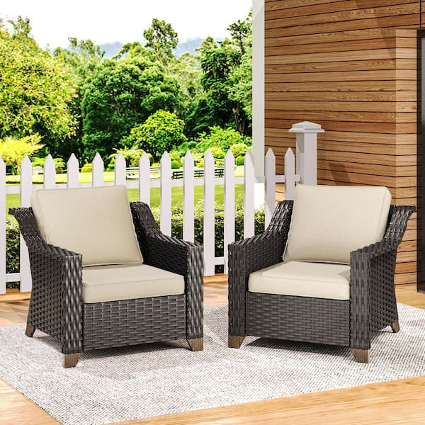 Patio Wicker Outdoor Lounge Chair with Thick Baby Beige Cushions (2-Piece)
