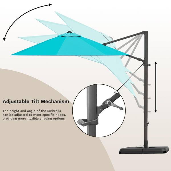 10 ft. Market Cantilever Outdoor Patio Umbrella with 360° Rotation and a Base in Blue