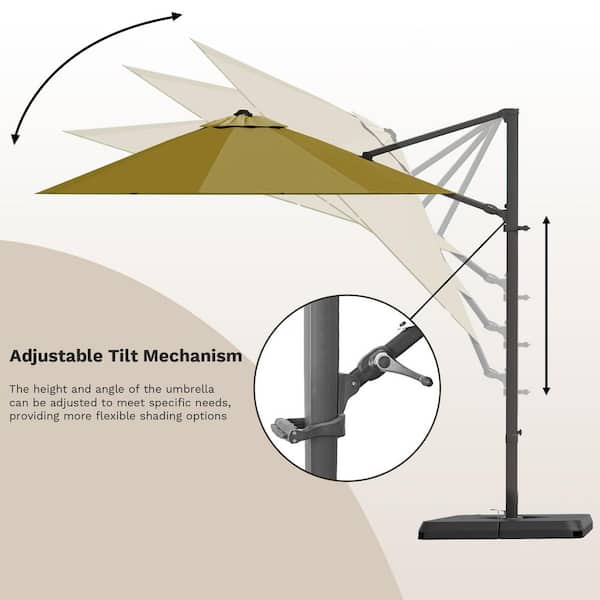 10 ft. Market Cantilever Outdoor Patio Umbrella with 360° Rotation and a Base in Brown