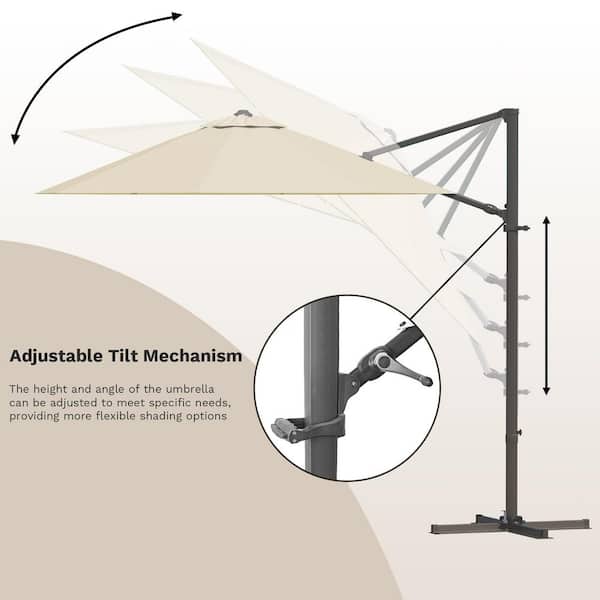 10 ft. x 10 ft. Market Cantilever Solar LED Patio Umbrella with 360° Rotation in Beige