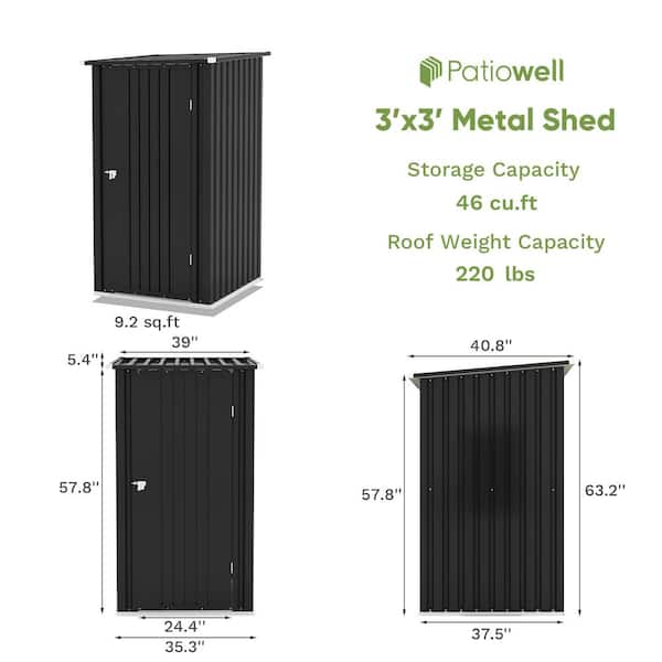 3 ft. W x 3 ft. D Galvanized Steel Outdoor Storage Metal Shed with Sloping Roof and Lockable Door, Black(9.2 sq. ft. )