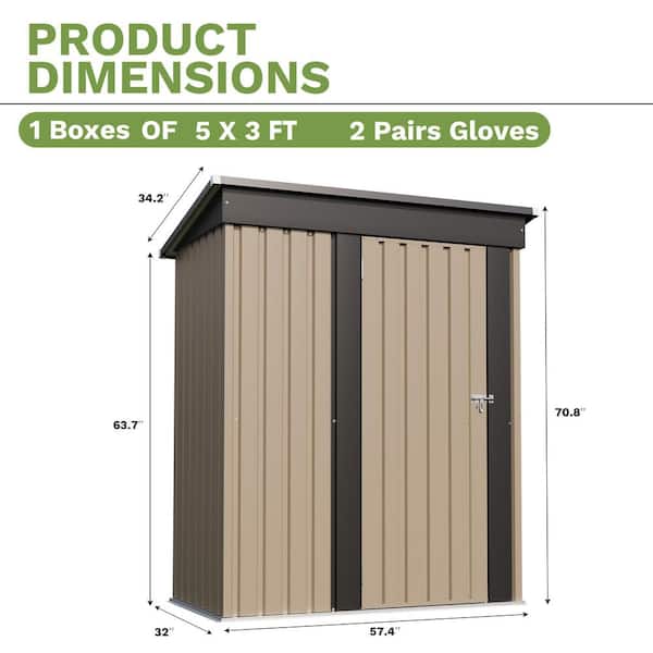 5 ft. W x 3 ft. D Outdoor Storage Brown Metal Shed with Sloping Roof and Lockable Door (14.5 sq. ft.)