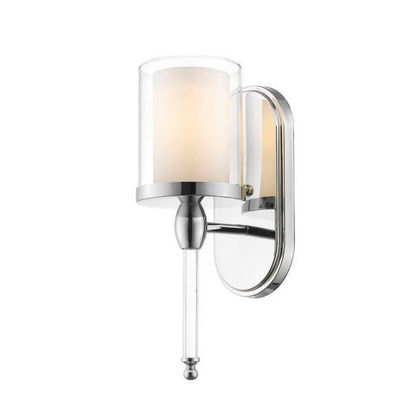 Paula 1-Light Chrome Sconce with Matte Opal and Clear Glass