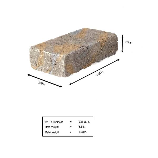 | Name | RumbleStone Mini 7 in. x 3.5 in. x 1.75 in. Yukon Concrete Paver (576 Pcs. / 98 Sq. ft. / Pallet) | RumbleStone Mini 7 in. x 3.5 in. x 1.75 in. Greystone Concrete Paver (576 Pcs. / 98 Sq. ft. / Pallet) | RumbleStone Mini 7 in. x 3.5 in. x 1.75 in. Cafe Concrete Paver (576 Pcs. / 98 Sq. ft. / Pallet) | RumbleStone Plank 10.5 in. x 3.5 in. x 3.5 in. Greystone Concrete Paver (192-Piece/ 49 sq. ft./Pallet) |