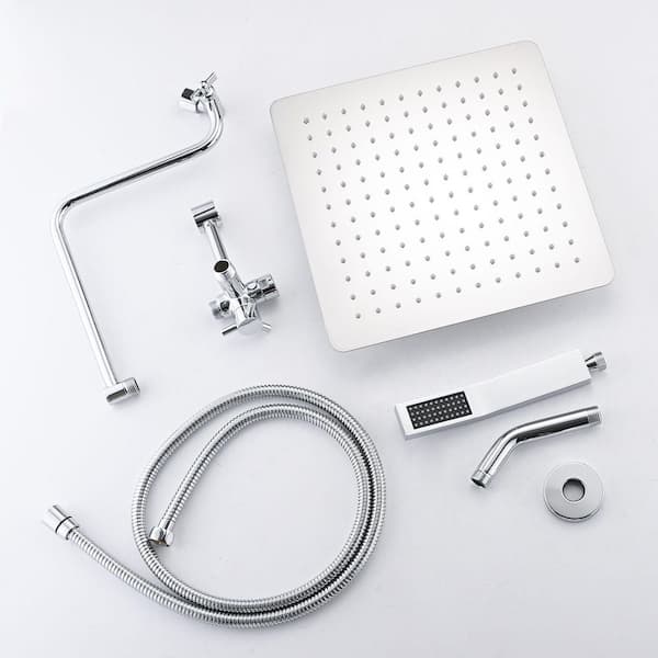 1-Spray 10 in. Wall Mount All Metal Shower Head with Handheld Combo 2.5 GPM in Chrome