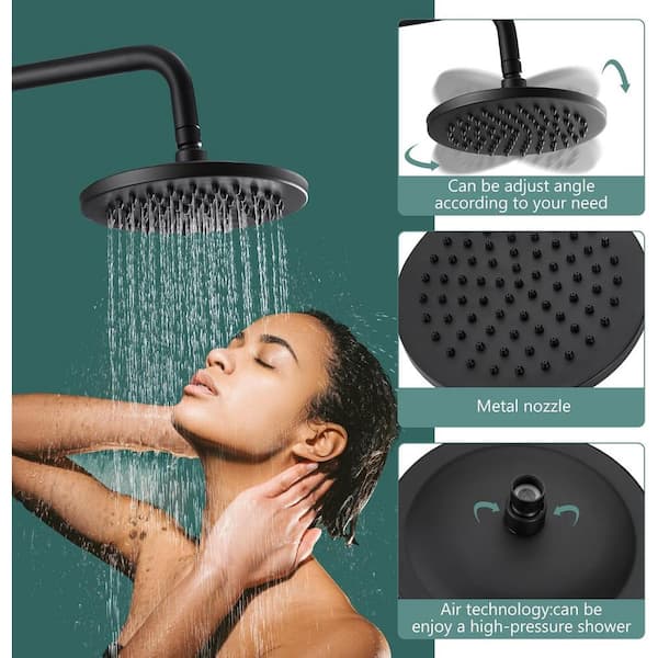 1-Spray 8 in. Wall Bar Shower Kit Rain Shower Head with Hand Shower and 2 Cross Knobs in Matte Black