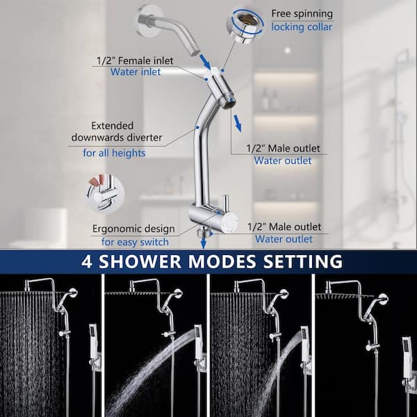 1-Spray Wall Mount 12 in. Dual Shower Head with Z-Shaped Extension Arm and Handheld Shower Head 2.5 GPM in Chrome