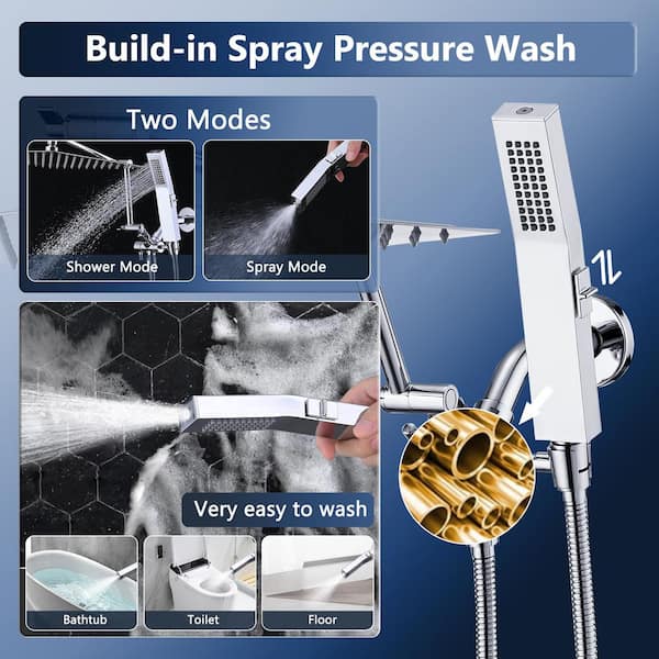 12 in. Wall Mount 2.5 GPM Dual Shower Head with Handheld Spray with 79 in.Extra Long Hose 3-Way Diverter in Chrome