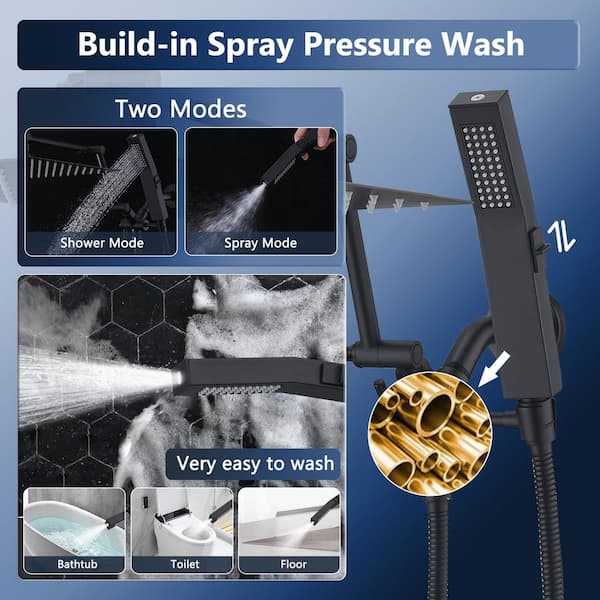 12 in. Wall Mount 2.5 GPM Dual Shower Head with Handheld Spray with 79 in. Extra Long Hose 3-Way Diverter in Matte Black