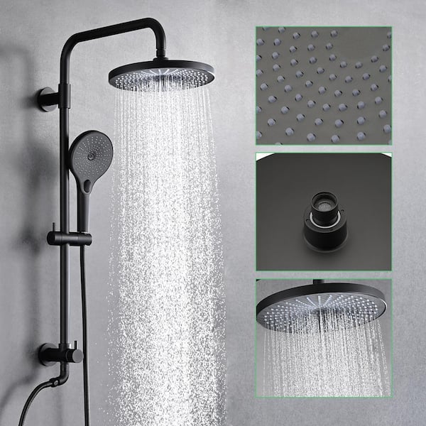 3-Spray Wall Bar Round Rain Shower Faucet Kit with Handheld Shower in Matte Black (Valve Not Included)