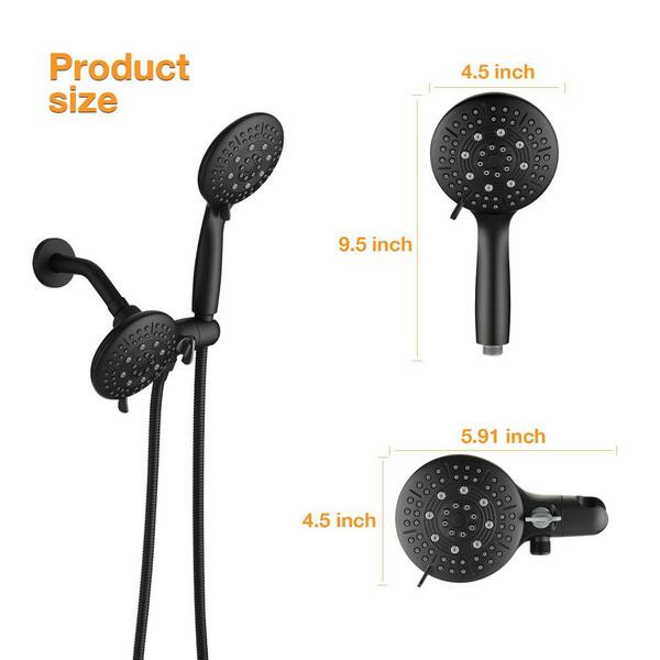 6-Spray 4.5 in. Dual Wall Mount Shower Head and Handheld Shower Head 1.8 GPM in Matte Black(Not Include Valve)