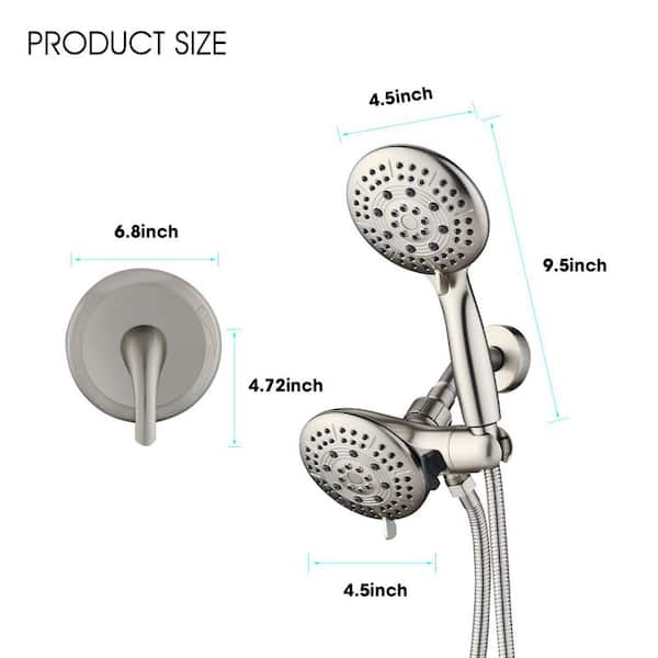 6-Spray 5 in. Dual Wall Mount Shower Head and Handheld Shower Head 1.8 GPM in Brushed Nickel (Valve Included)