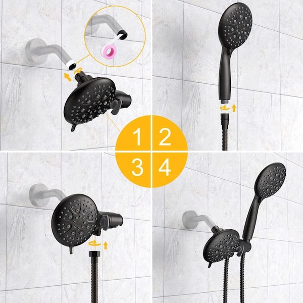 6-Spray 5 in. Dual Wall Mount Shower Head and Handheld Shower Head 1.8 GPM in Oil Rubbed Bronze (Valve Included)