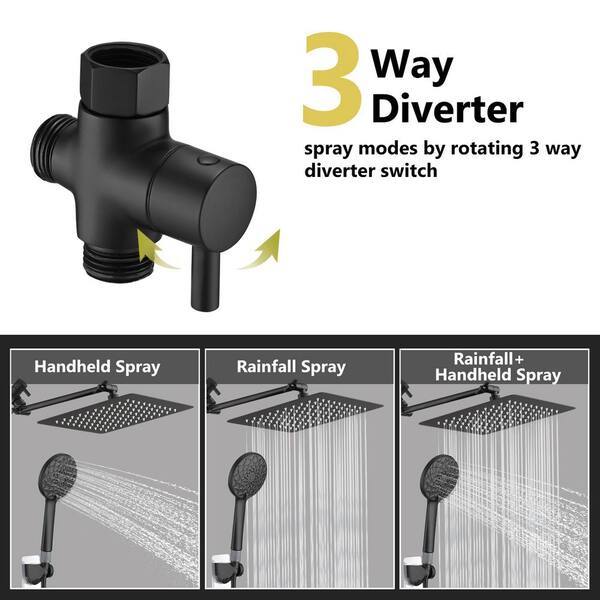 6-spray 10 in. Dual Wall Mount Square Rain Shower Head and Handheld Shower Head with 2.5 GPM in Matte Black
