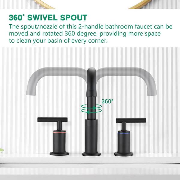8 in. Widespread Double Handle Bathroom Faucet with Drain Kit in Matte Black