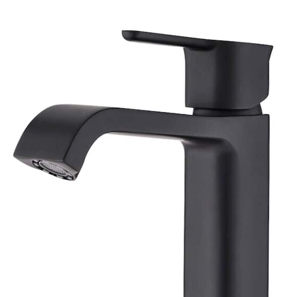 Single Handle Single Hole Bathroom Faucet with Deckplate Included and Pop-Up Drain in Matte Black