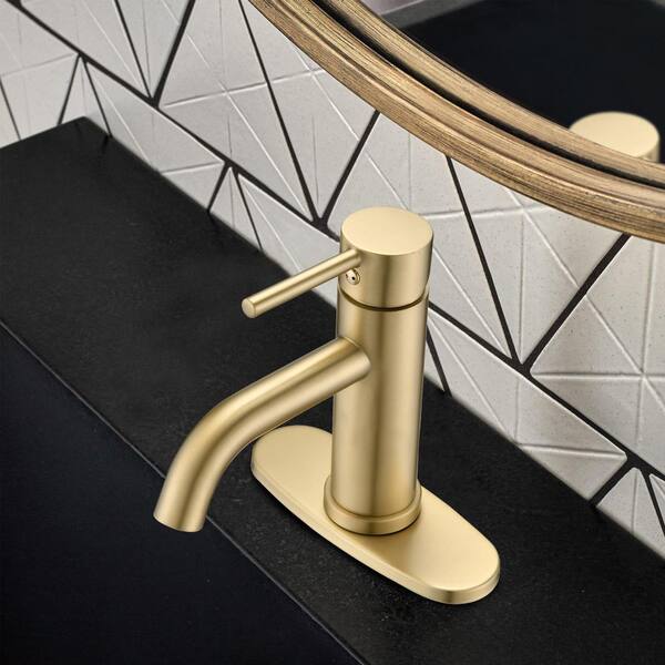 Single Handle Single Hole Bathroom Faucet with Deckplate Included and Spot Resistant in Brushed Gold
