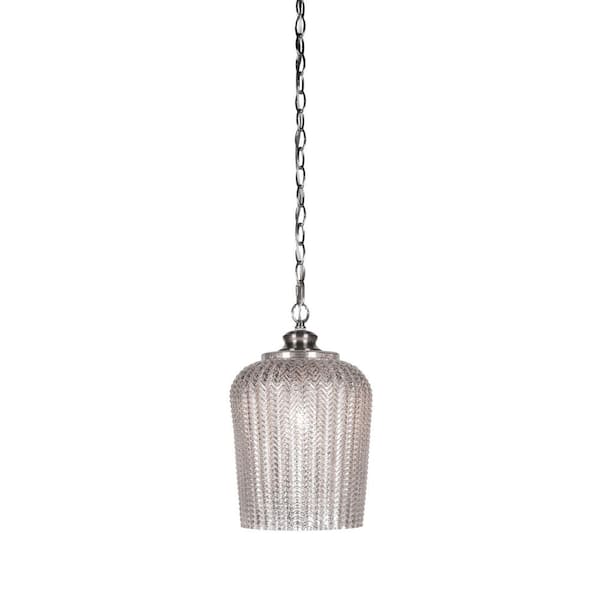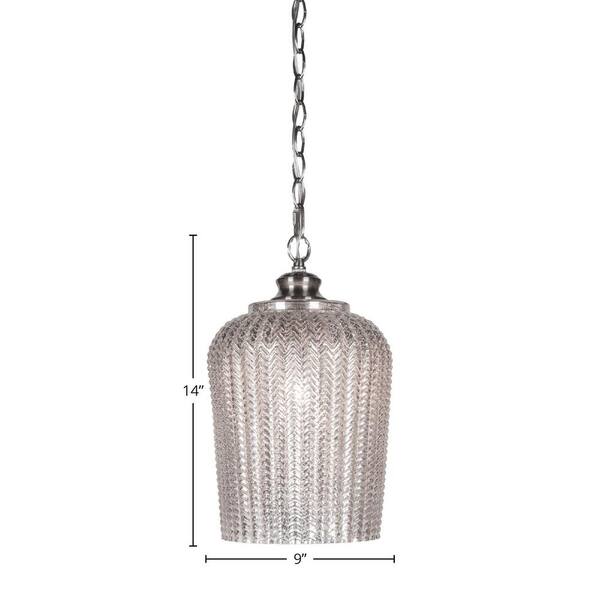 Peabody 60-Watt 1-Light Brushed Nickel Pendant Light with 9 in. Silver Textured Glass Shade and No Bulb Included