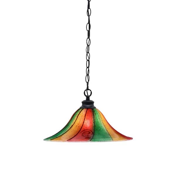 Peabody 60-Watt 1-Light Matte Black Shaded Mini Pendant Light with Glass Shade