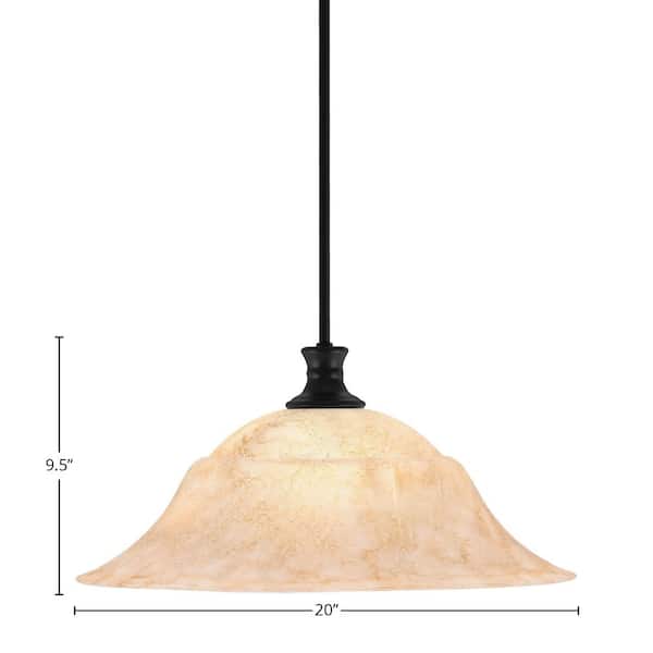 Peabody 60-Watt 1-Light Matte Black Shaded Pendant Light with 20 in. Italian Marble Glass Shade, No Bulb Included