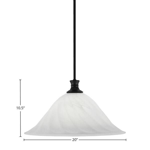 Peabody 60-Watt 1-Light Matte Black Shaded Pendant Light with 20 in. White Swirl Glass Shade, No Bulb Included