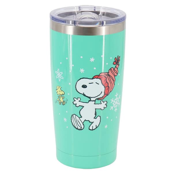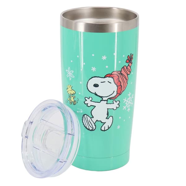 Snoopy and Woodstock Joy 20 Ounce Stainless Steel Travel Tumbler with Clear Lid in Mint Green