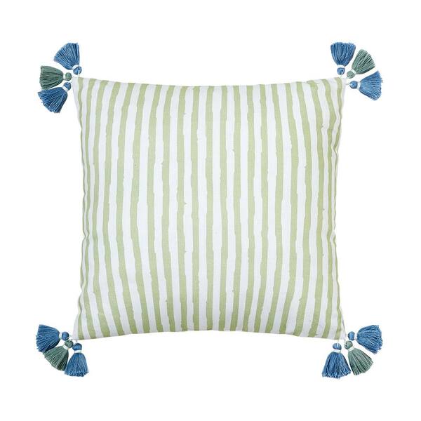 Hamilton Green/White Stripe Embroidered Down Alternative 18 in. x 18 in. Throw Pillow