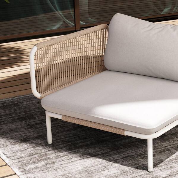 1-Piece Metal Outdoor Sectional Sofa with Beige Cushions 2-Armrest