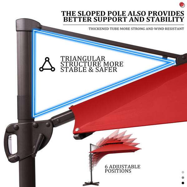 10.5 ft. Aluminium Square 360° Rotation Offset Cantilever Patio Umbrella in Red and Stand Fillable Base