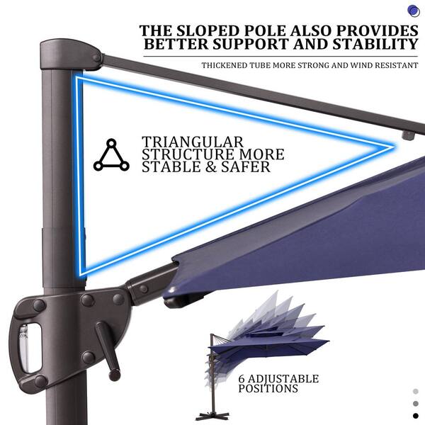 10.5 ft. Square Aluminum 2-Tier Outdoor Cantilever Patio Umbrella 360° Rotation in Navy Blue with Stand