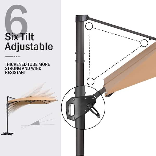 10.5 ft. x 10.5 ft. Large Outdoor Aluminum Cantilever 360° Rotation Patio Umbrella in Tan with Base