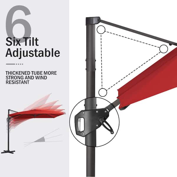 10 ft. x 10 ft. Large Outdoor Aluminum Cantilever 360° Rotation Patio Umbrella in Red with Base Stand Weights