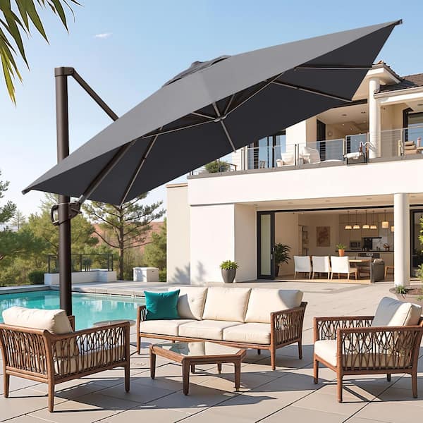 10 ft. x 13.5 ft. Oversized Heavy Duty Aluminum Outdoor Umbrella 360° Rotation Cantilever Patio Umbrella in Gray