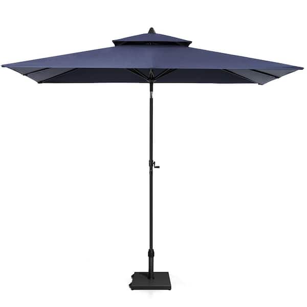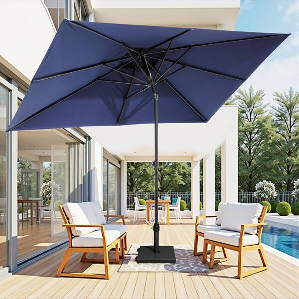 10 ft. x 6.5 ft. Rectangular Metal Market Crank and Tilt Patio Umbrella in Navy with 45 lbs. Concrete Wheeled Base